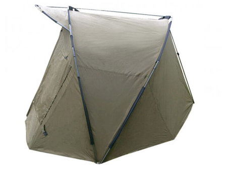 De bivvy heeft 2 ramen en een deur met muggengaas. Doordat de voorkant een stuk uitsteekt boven de ingang regent het niet naar binnen. Gemaakt van 210D nylon materiaal (100% waterdicht) en een stevig frame met een buisdikte van 16 mm.
